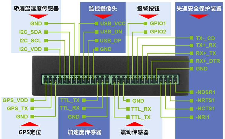 在整套电梯物联网管理方案中,将GPS定位传感器、轿厢温度传感器、加速度传感器、报警装置接入非凡电子R100;利用R100的边缘计算能力,对采集到的数据进行运算和整形,迅速识别并响应异常运行状态;最终通过无限局域网络或蜂窝数据网络上发至管理平台,完成电梯的物联网接入。
