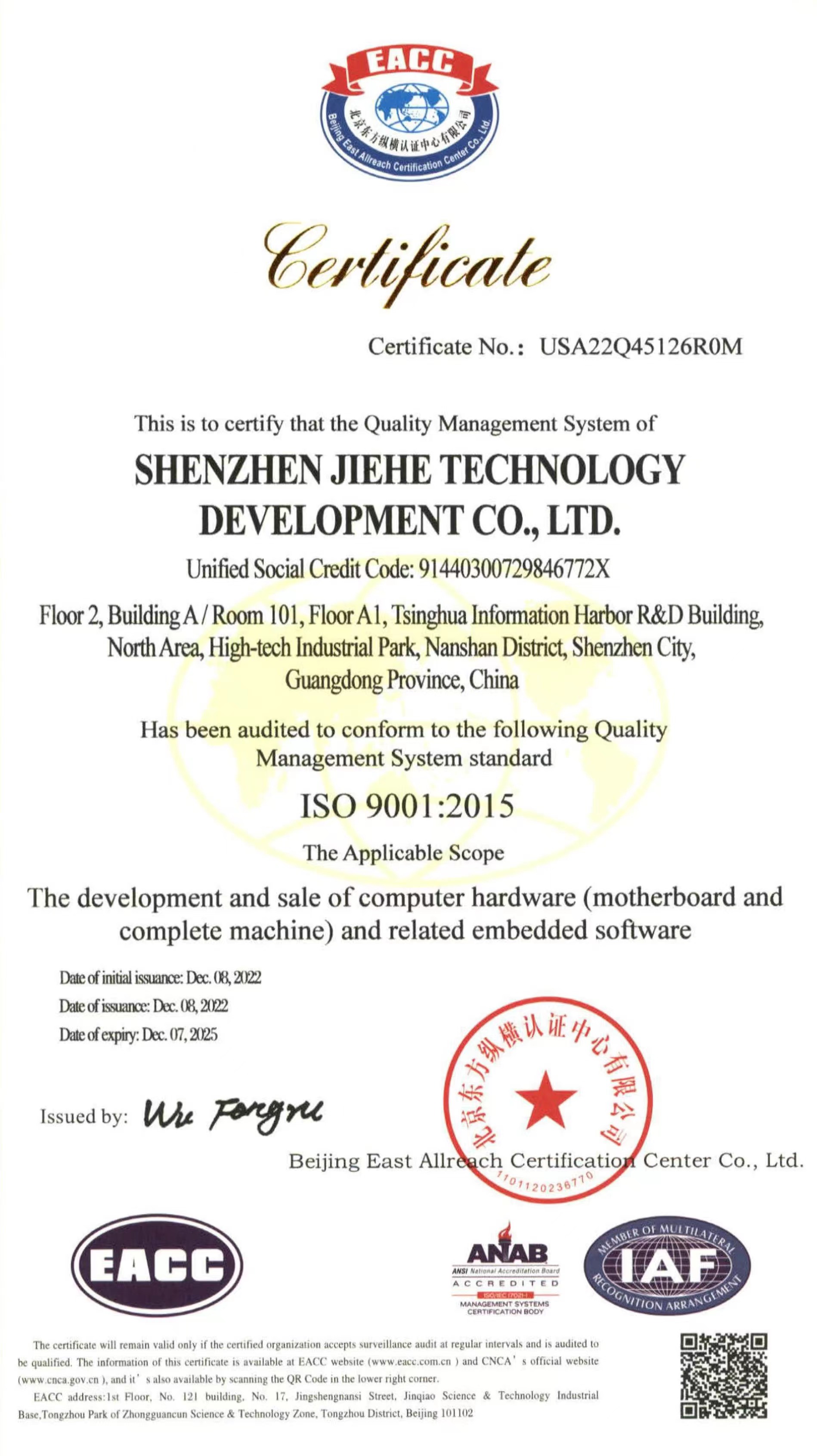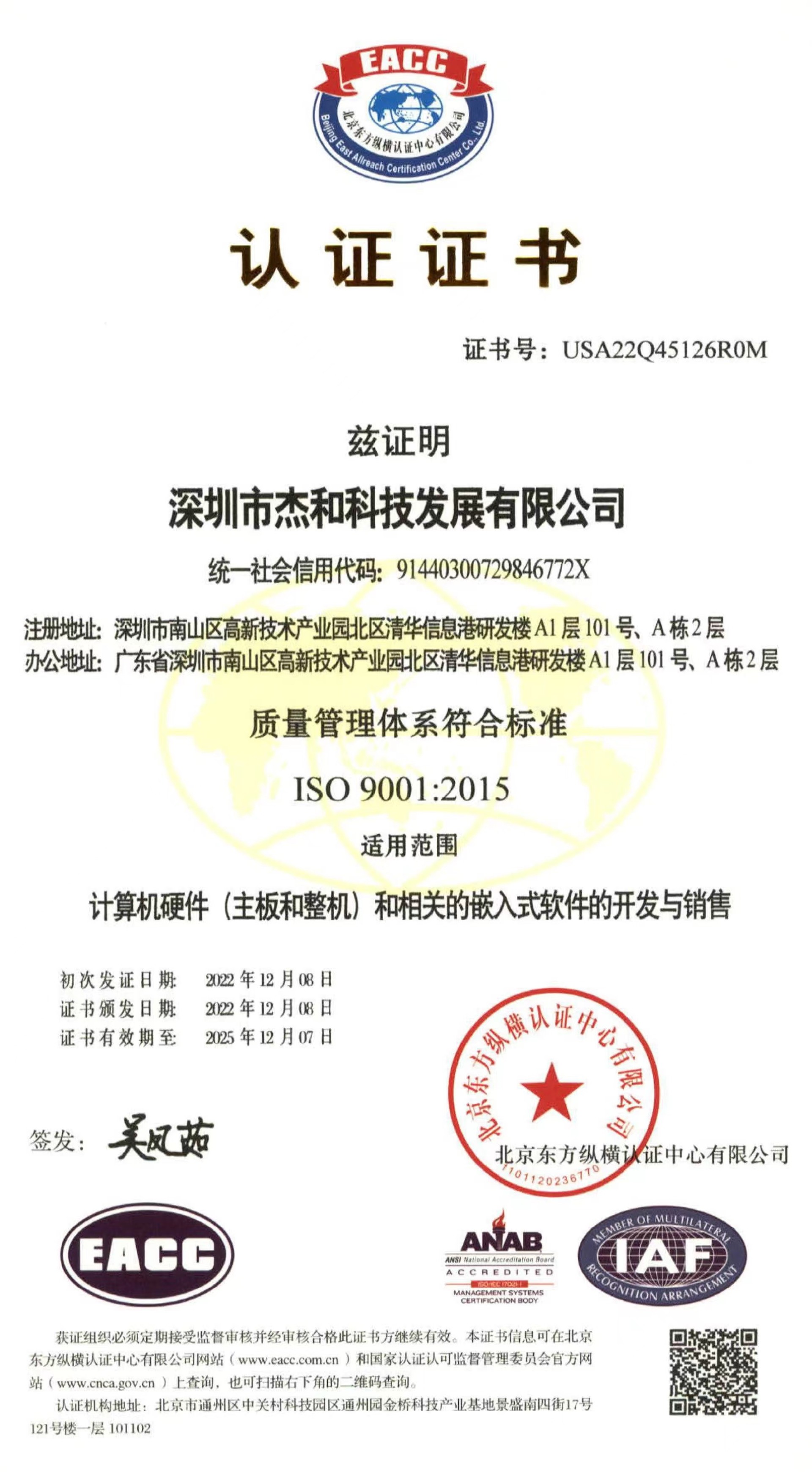 ISO9001质量管理体系认证作为国际标准化组织的管理性质标杆,它的地位可见一斑,其认可彰显了非凡电子科技的体系管理以及产品的质量。非凡电子科技在过去几年不断提升设备标准化生产的能力,减少人为质量问题,把ISO9001质量管理体系理念贯穿于产品研发—生产全流程。