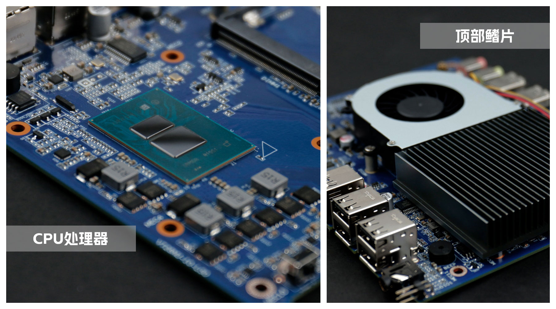 主板是非凡电子桌面云终端Y-BOX S2的核心部件,拆开主板上的顶部铝制鳍片与风扇,整体配色是常规的深蓝色,由非凡电子自有工厂倾力打造,CPU采用板贴的形式,表面涂了一层散热膏用于导热,可以支持intel新一代Alder Lake-N平台处理器,为英特尔首款基于 7nm 的产品线,最高可支持到8核,采用大小核(E核、P核)的全新架构,在同等功耗下有更优异的性能表现。
