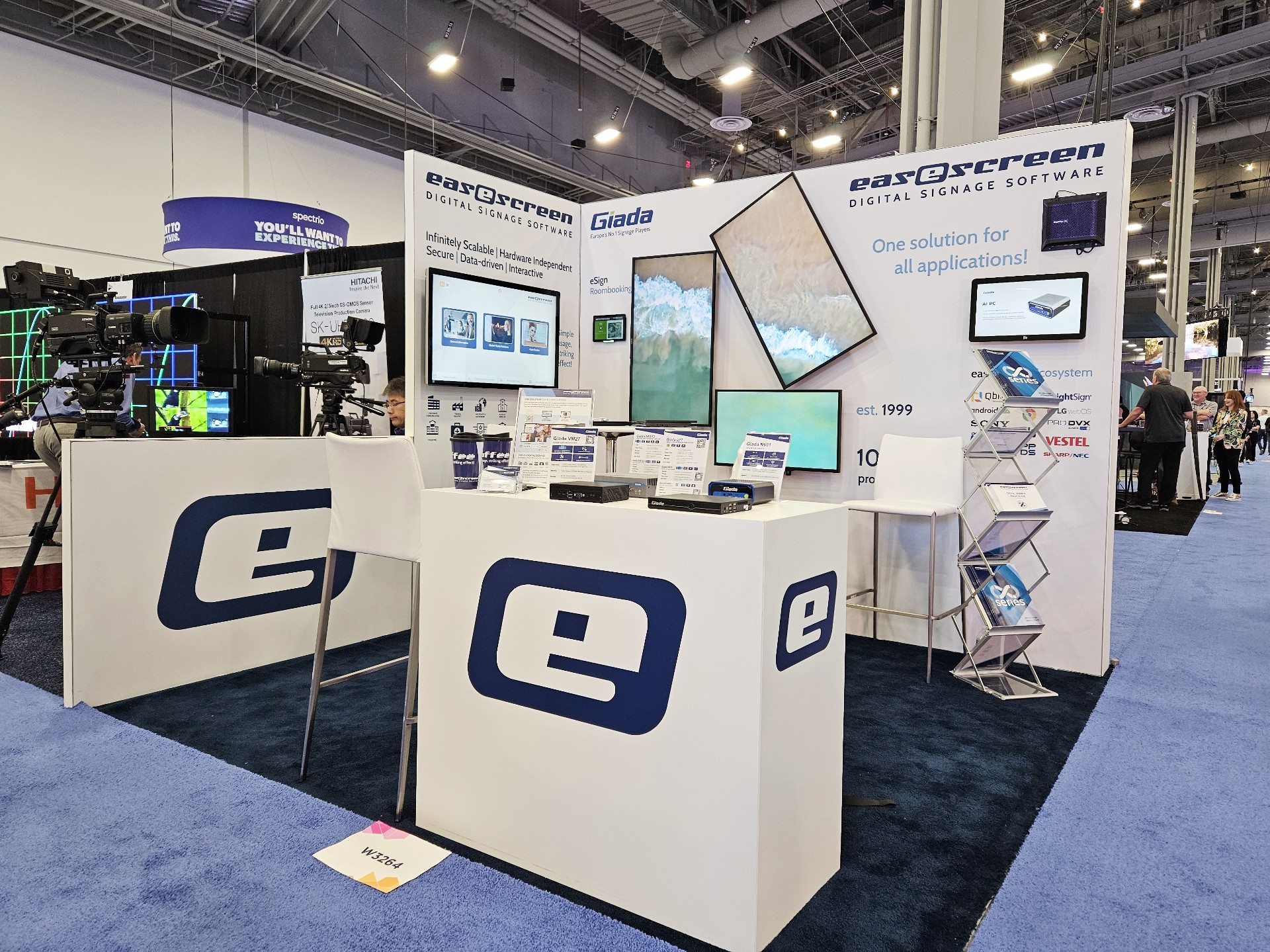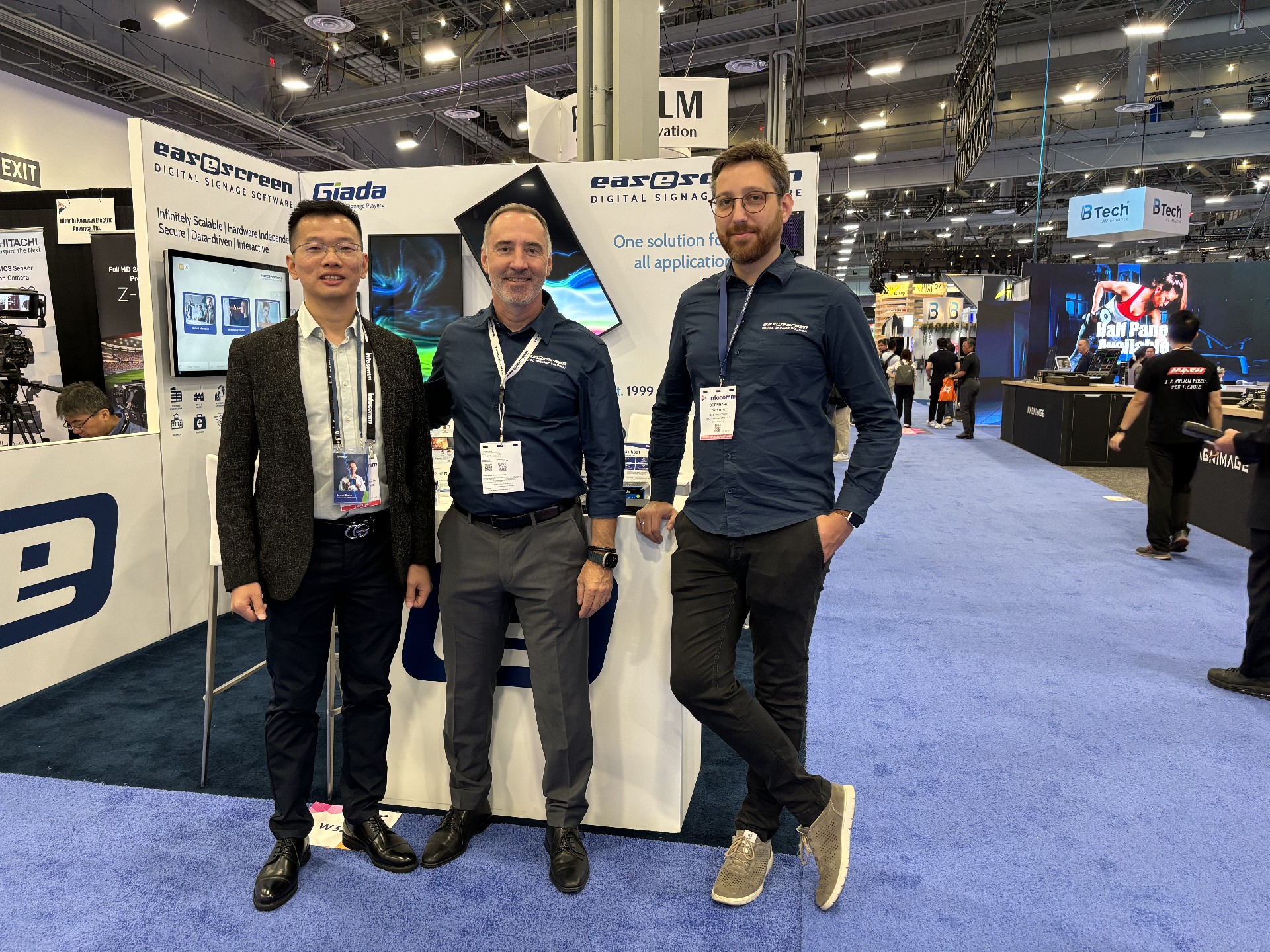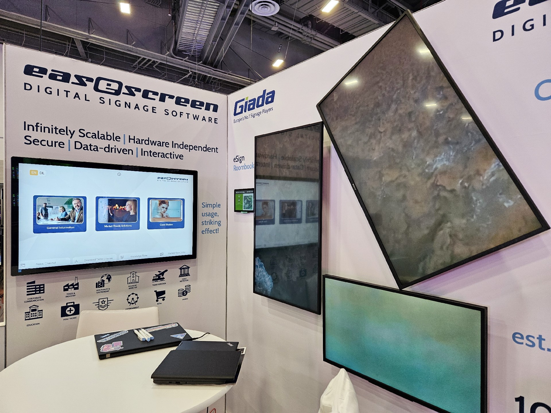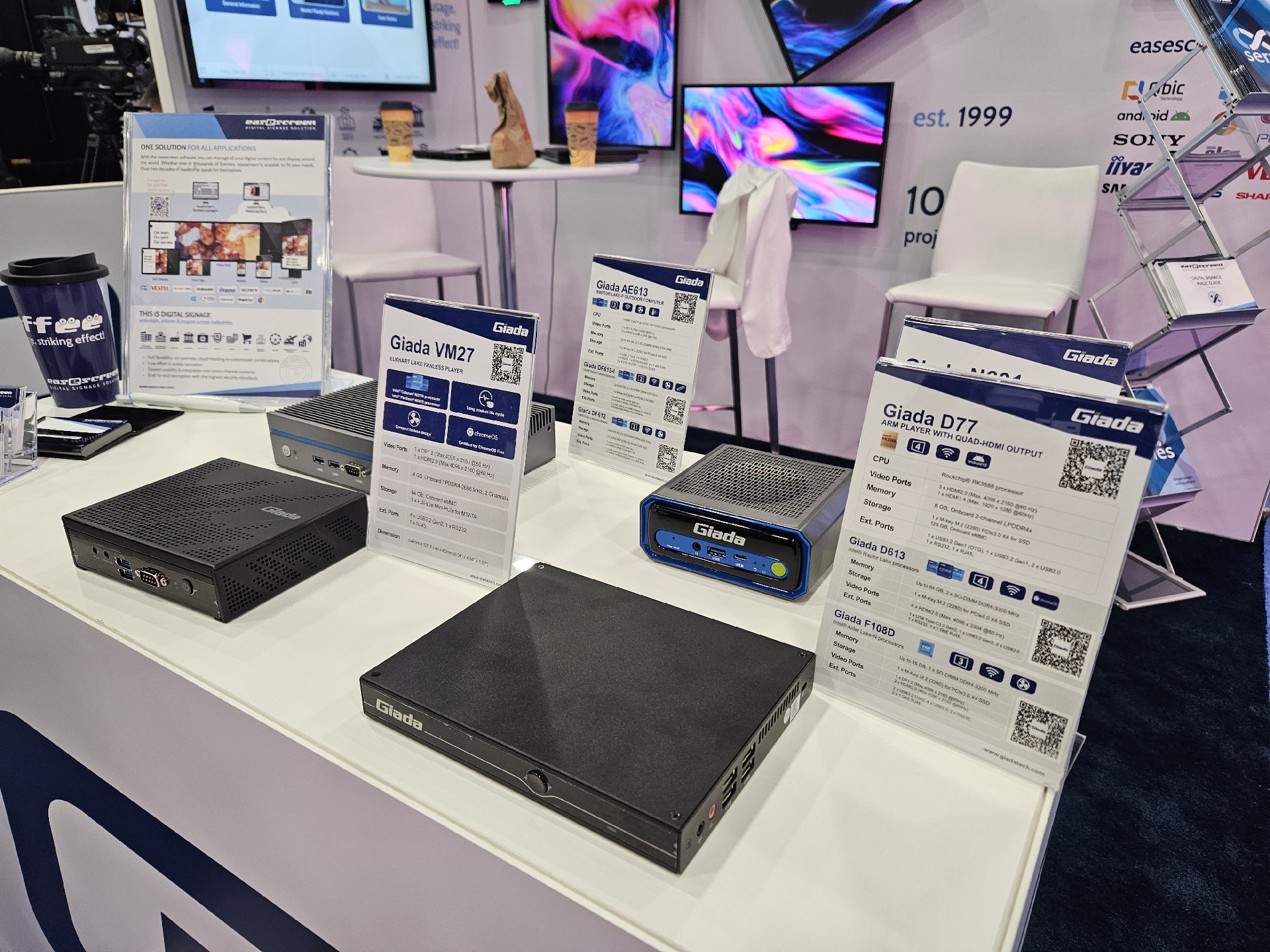 非凡电子科技Giada作为全球数字标牌领域的领导品牌,产品应用范围涵盖全球大型连锁店,购物中心,学校,医疗机构,企业办公室等。本次展会,非凡电子科技牵手合作伙伴easescreen,展示一系列创新数字标牌解决方案,带来强势产品及最新产品,现场收获超高人气。