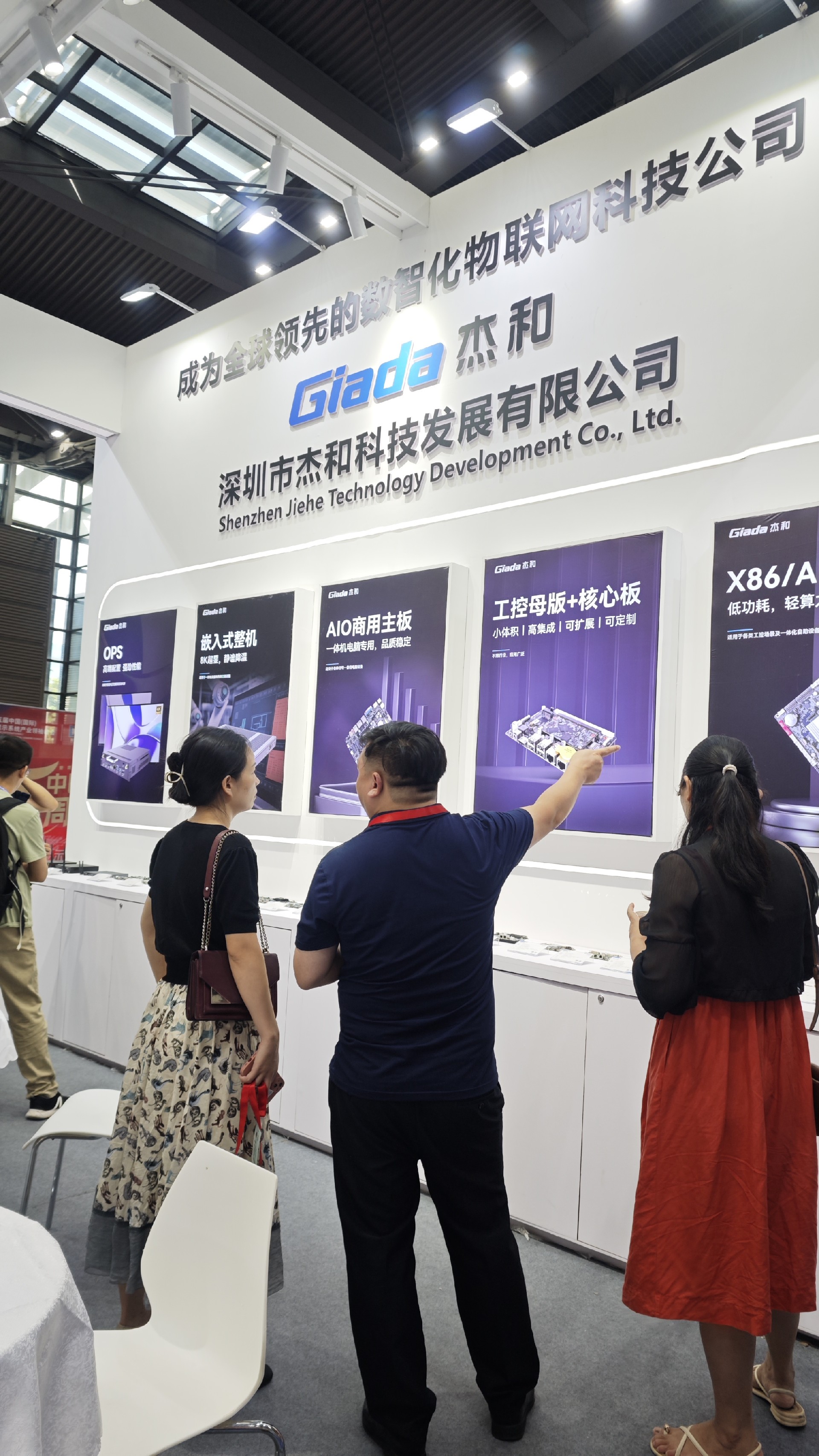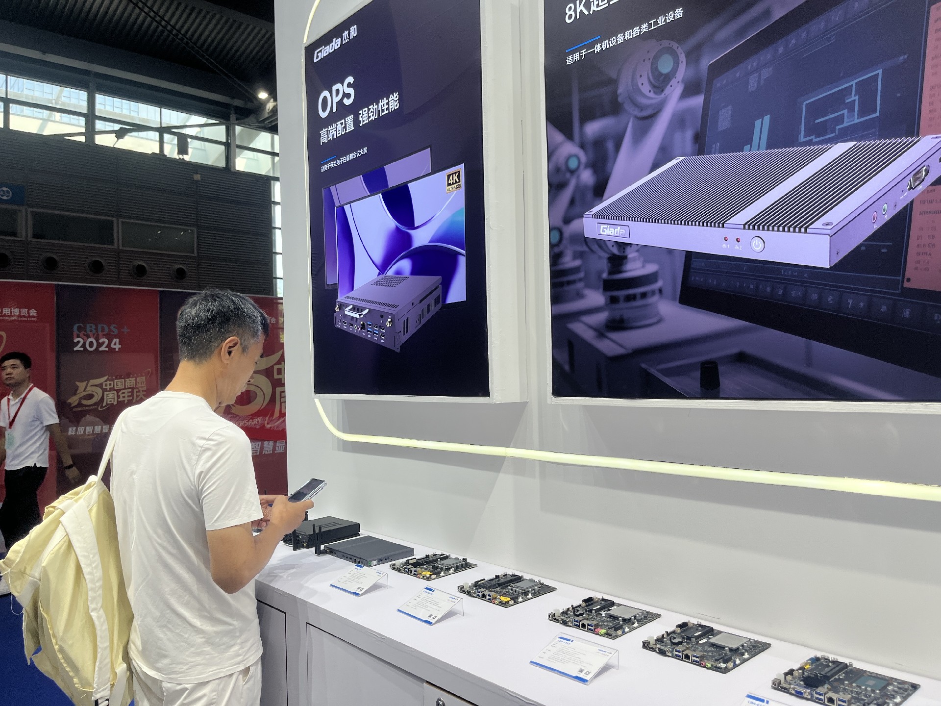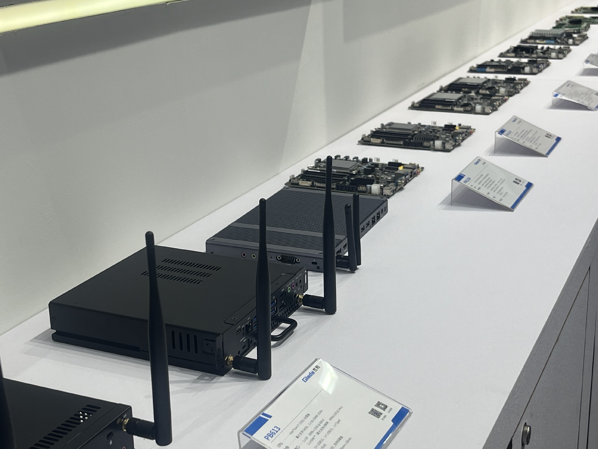 非凡电子科技展位放置在c位的明星产品和最新产品吸引了众多参观者的目光。展台下方整齐排列着公司的产品,包括主板、嵌入式整机、OPS等,这些产品不仅适用于商业展示领域,还广泛应用于工业、制造业和教育业等多个行业。
