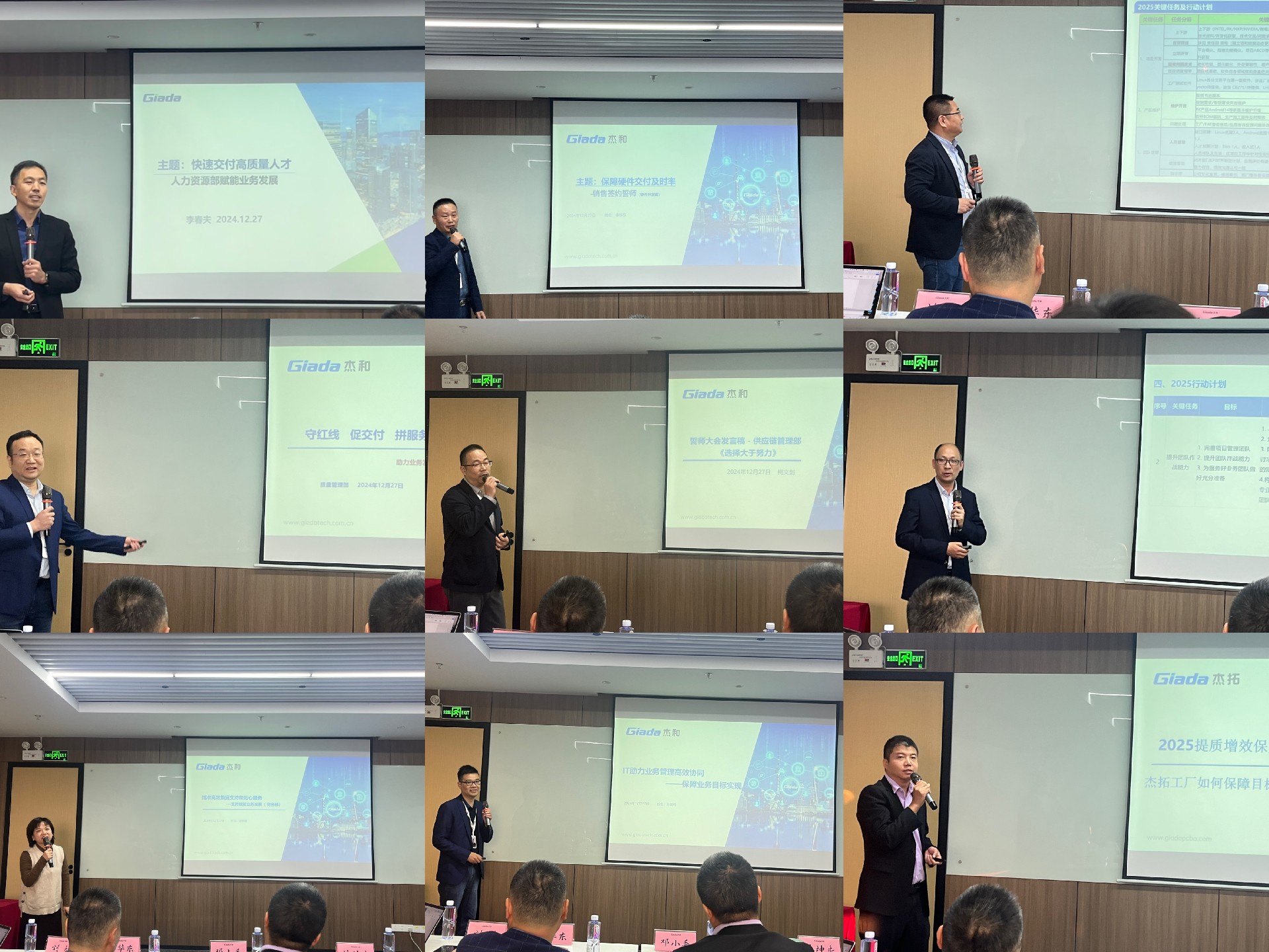 目标的达成,离不开每个中后台部门的通力合作和全力以赴。在此次大会上,硬件开发部、软件开发部、杰拓工厂等9个部门负责人不仅详尽规划了2025年的工作蓝图,更坚定表态,将作为业务部门最坚强、最可靠的后盾,确保前线作战的胜利无后顾之忧。