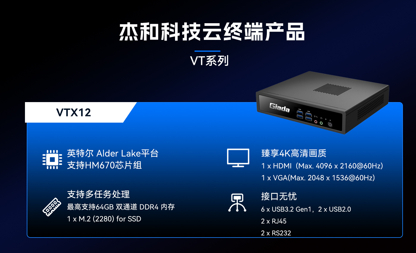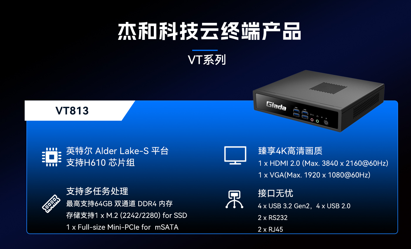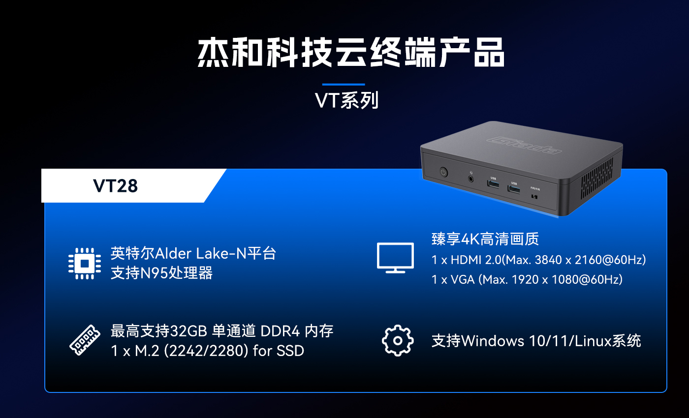 除此之外非凡电子科技云终端VT系列产品线还提供多样化的硬件配置选择,涵盖多种处理器架构、内存容量、存储设备和接口类型,满足不同应用场景的个性化需求。