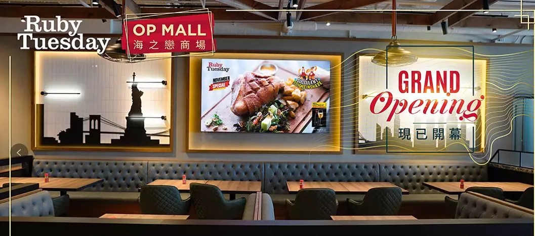 非凡电子科技是Ruby Tuesday连锁餐厅智慧化项目的方案提供商。非凡电子承担了整个餐厅的多媒体信息系统架构的设计以及终端媒体播放器的安装和部署,帮助餐厅实现了6屏拼接、4屏拼接及86寸超大屏显示,使餐厅的商业环境和品牌形象得到了极大的提升。