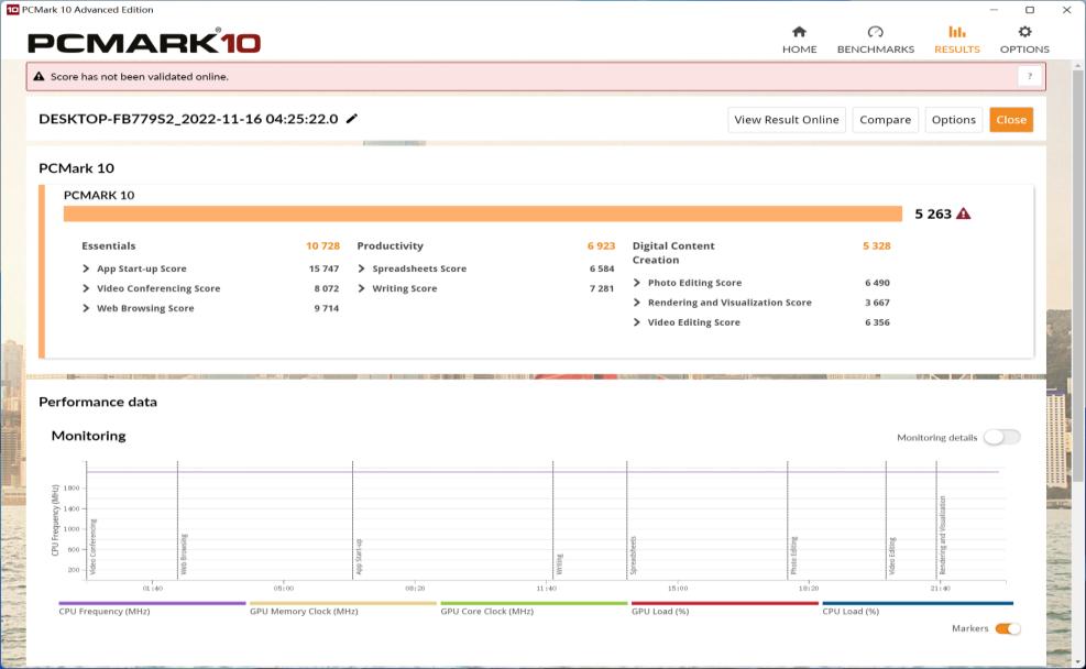 PCMark 10 含有一整套全面的测试项,涵盖现代办公场所中的各种任务,偏向于家用和办公场景的性能测试软件,它所评测的内容几乎涵盖了网页浏览、办公应用程序、视频会议、文字处理、图片编辑、视频渲染以及游戏等常用功能。通过实测,非凡电子可以看出,综合得分综合得分为10728、生产力得分为6923,数字内容创作为5328,这些数据表明,非凡电子同时运营十多个程序也都是不卡顿的,跑分数据符合预期。
