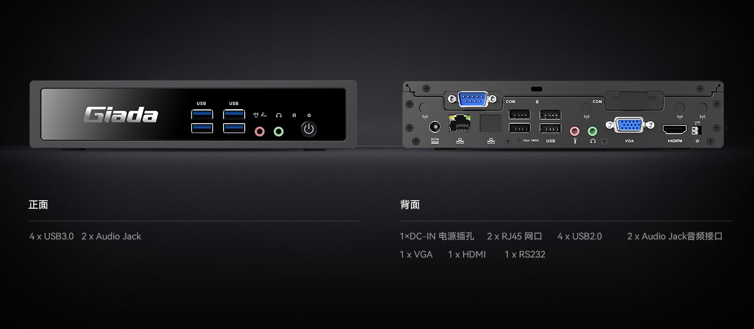 非凡电子云终端BW612机身背面配备四个USB2.0接口,两个3.5mm 音频接口,两个千兆网线接口,一个VGA和 HDMI 接口,兼容几乎全部主流外设,满足云终端全场景接口使用需求,同时正面配备两个3.5mm音频接口,四个USB3.0接口,满足即插即用的设备需求。