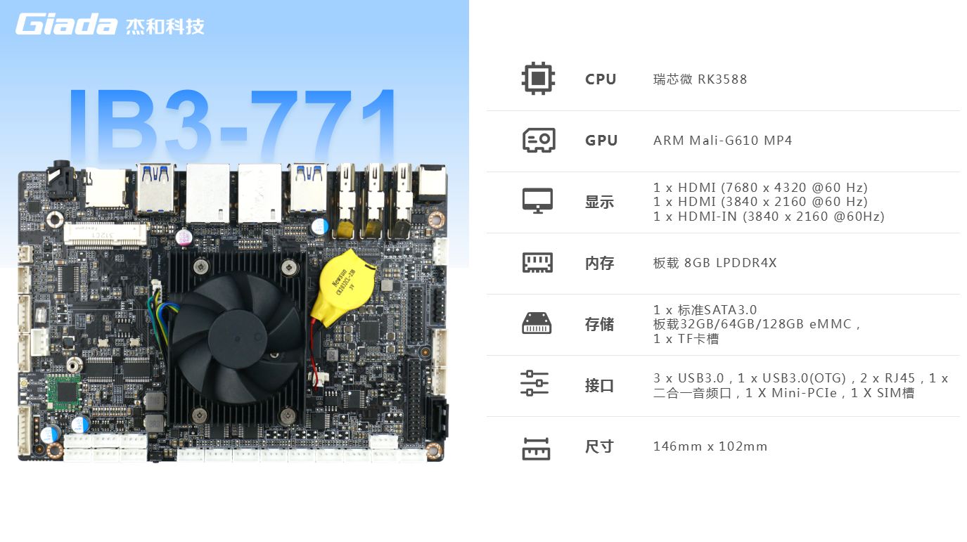 作为瑞芯微新一代旗舰级高端芯片,RK3588处理器具备出色的性能,能够满足各种高端应用场景的需求。借助其卓越的性能特点,非凡电子科技骄傲地推出了最新的8K人工智能主板IB3-771。