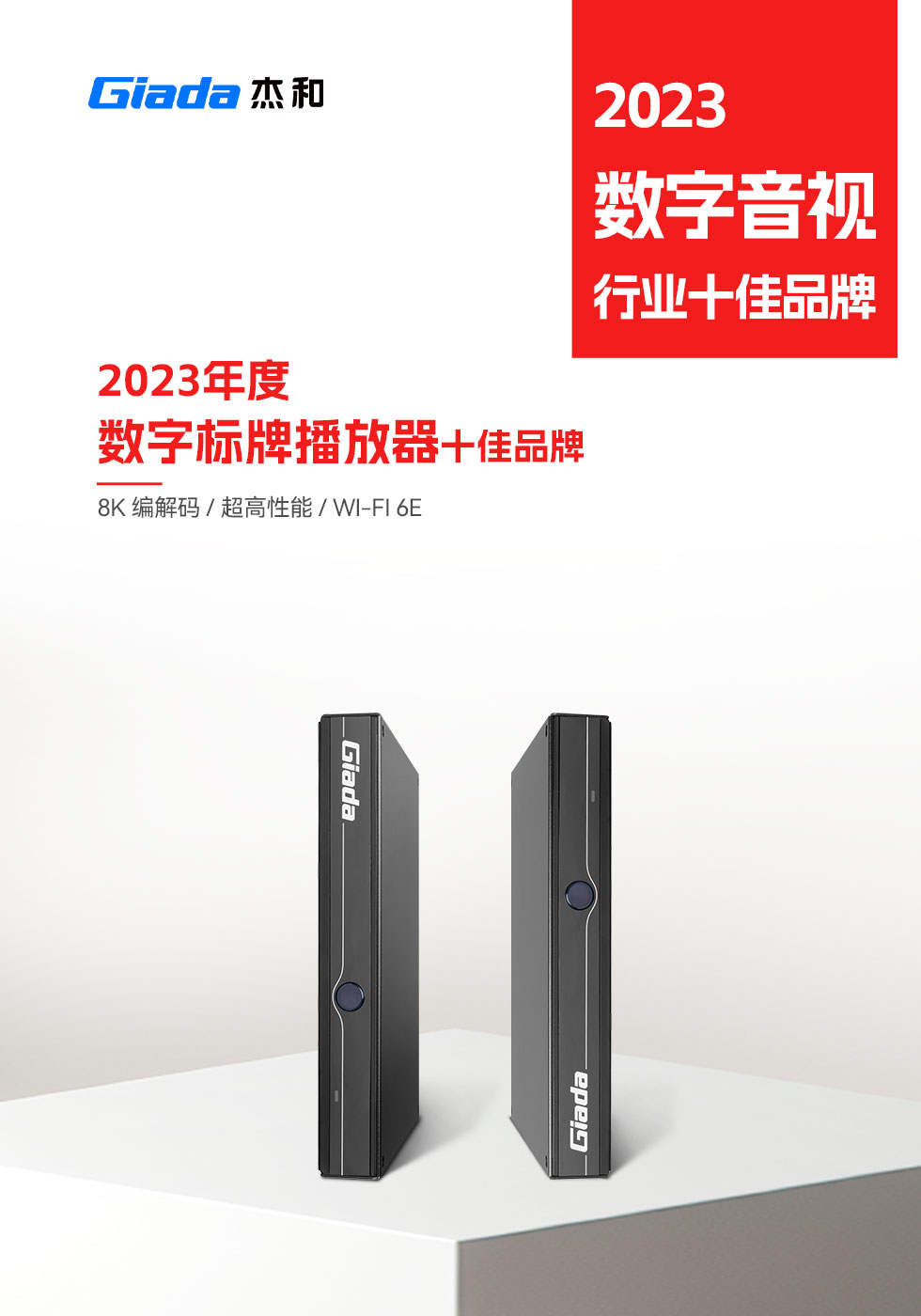 2023年接近尾声,新旧更替之际,第15届DAV数字音视工程网“数字音视行业十佳品牌评选活动”获奖名单新鲜出炉。非凡电子科技在此次评选活动中,荣获“2023年度商显主板十佳品牌”、“2023年度数字标牌播放器十佳品牌”两项大奖,Giada非凡电子科技已连续四年登上同一榜单。