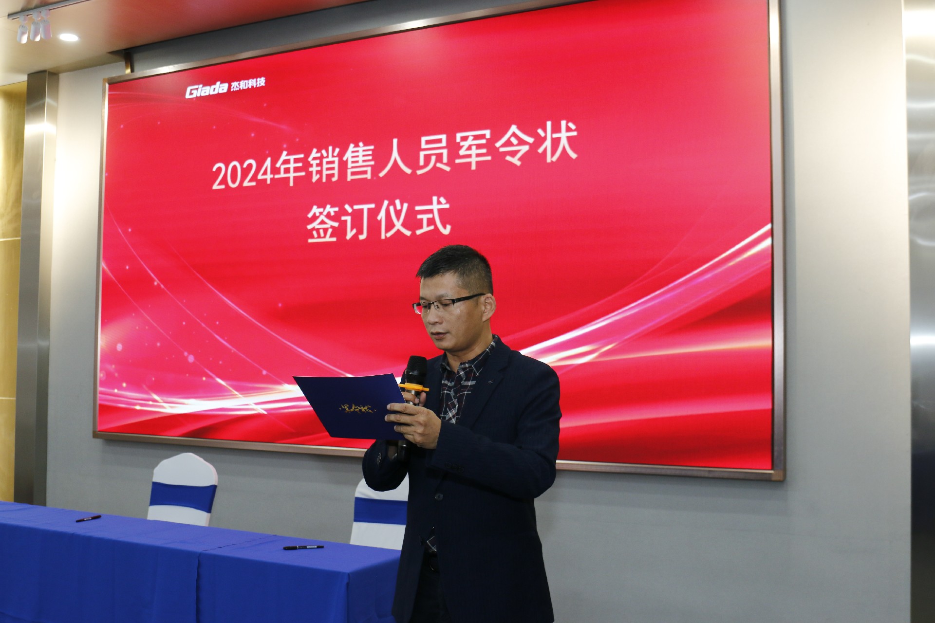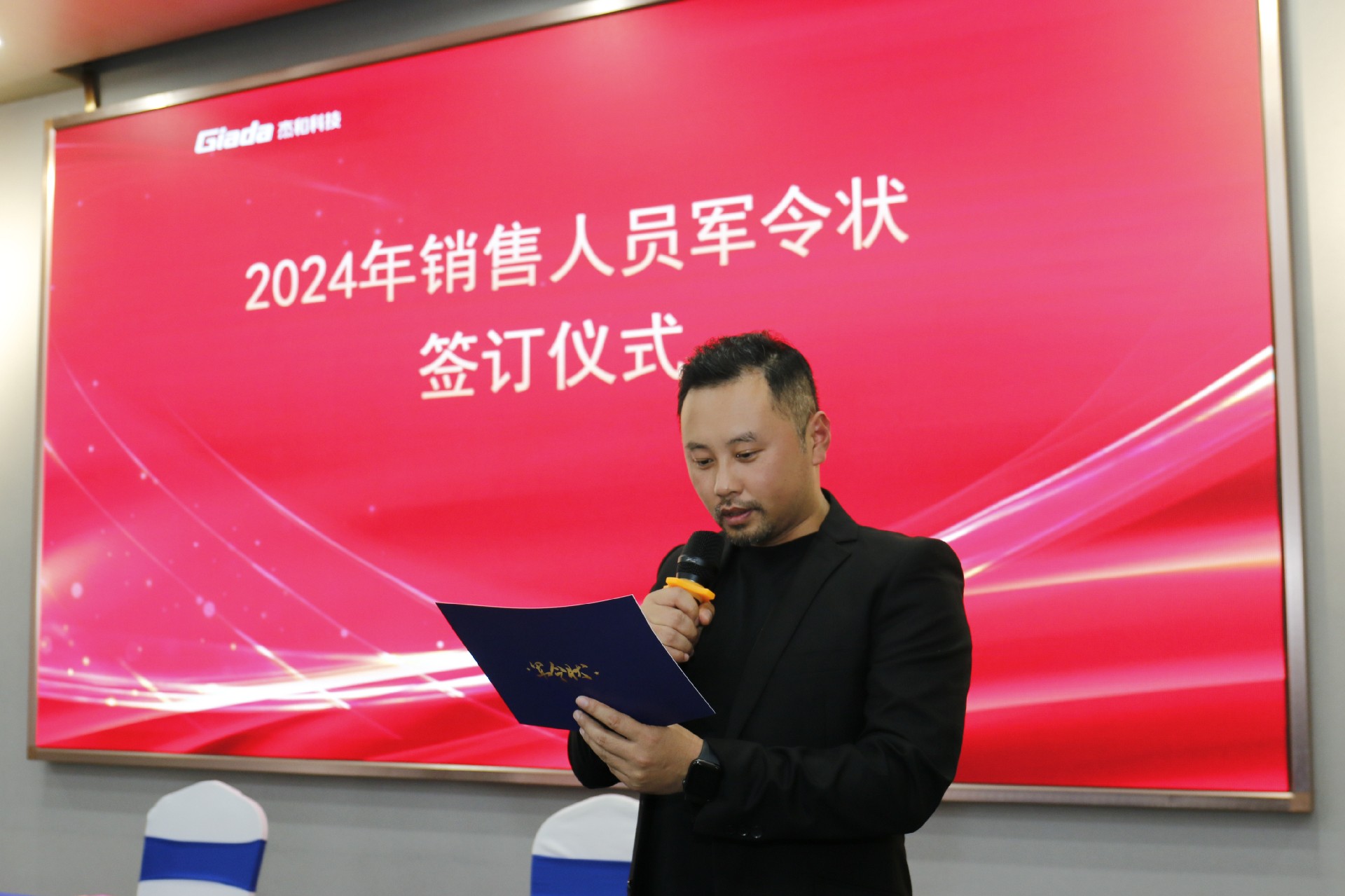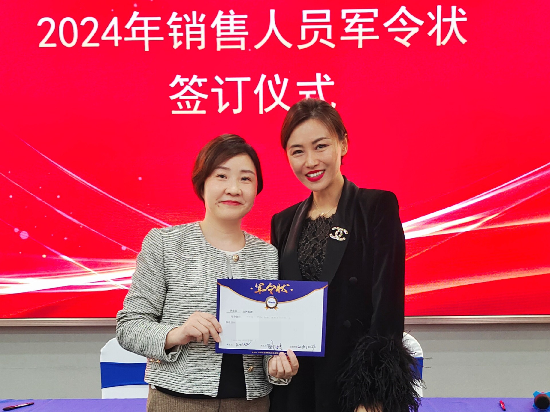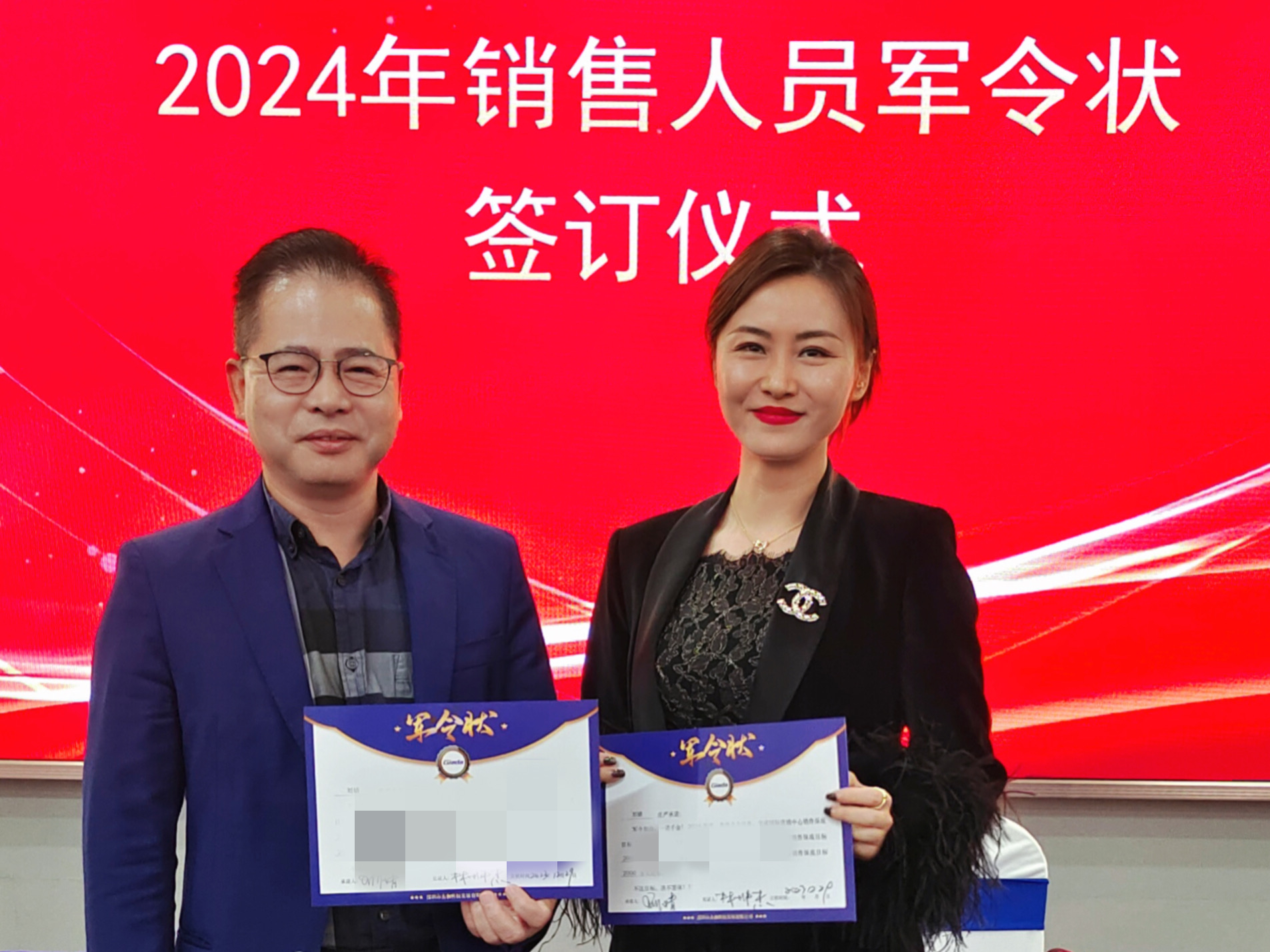 2024公司年度战略目标确立,言出必行,使命必达,国际/国内销售团队为了共同的目标开始军令状签约仪式。一纸军令状,是非凡电子科技与销售人员的双向承诺,是压力,更是动力。是不破楼兰终不还的决心,更是春风得意马蹄疾,一日看尽长安花的期待。