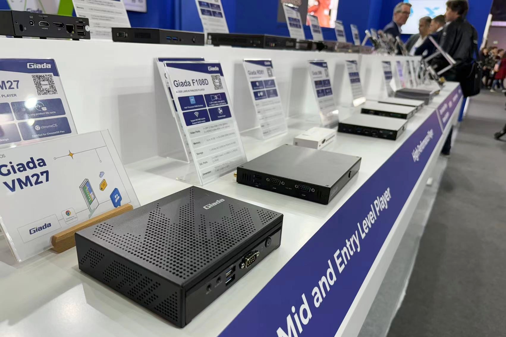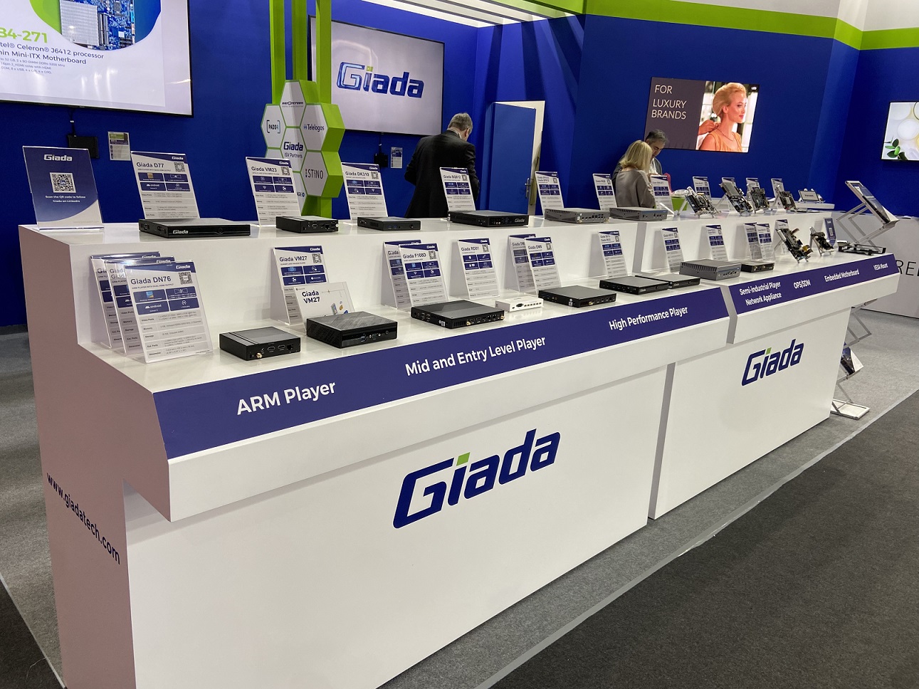 作为2024年的开年首秀,Giada非凡电子科技携一众极具竞争优势的媒体播放器、AI边缘计算机和网络设备等最新技术产品,以及智能显示、智慧零售、智慧安防等物联网硬件解决方案亮相现场,全方位展示了“物联万物,非凡电子智造”战略赋能智慧商显领域的创新引力,推动行业加速进入万物互联的新世界。