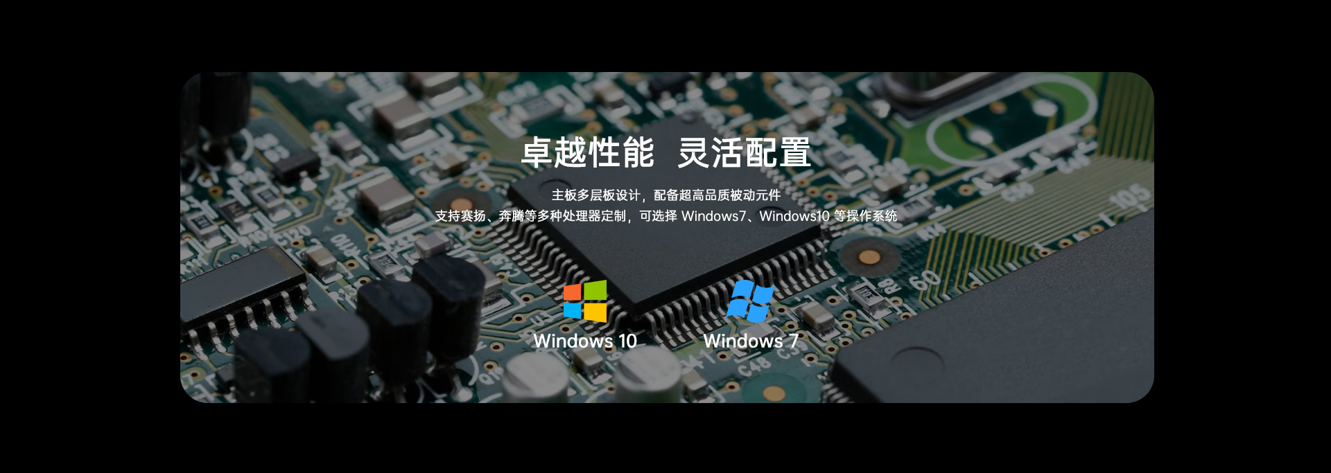 支持1 x VGA(DP可选), 1 x HDMI显示,支持4K60Hz视频输出