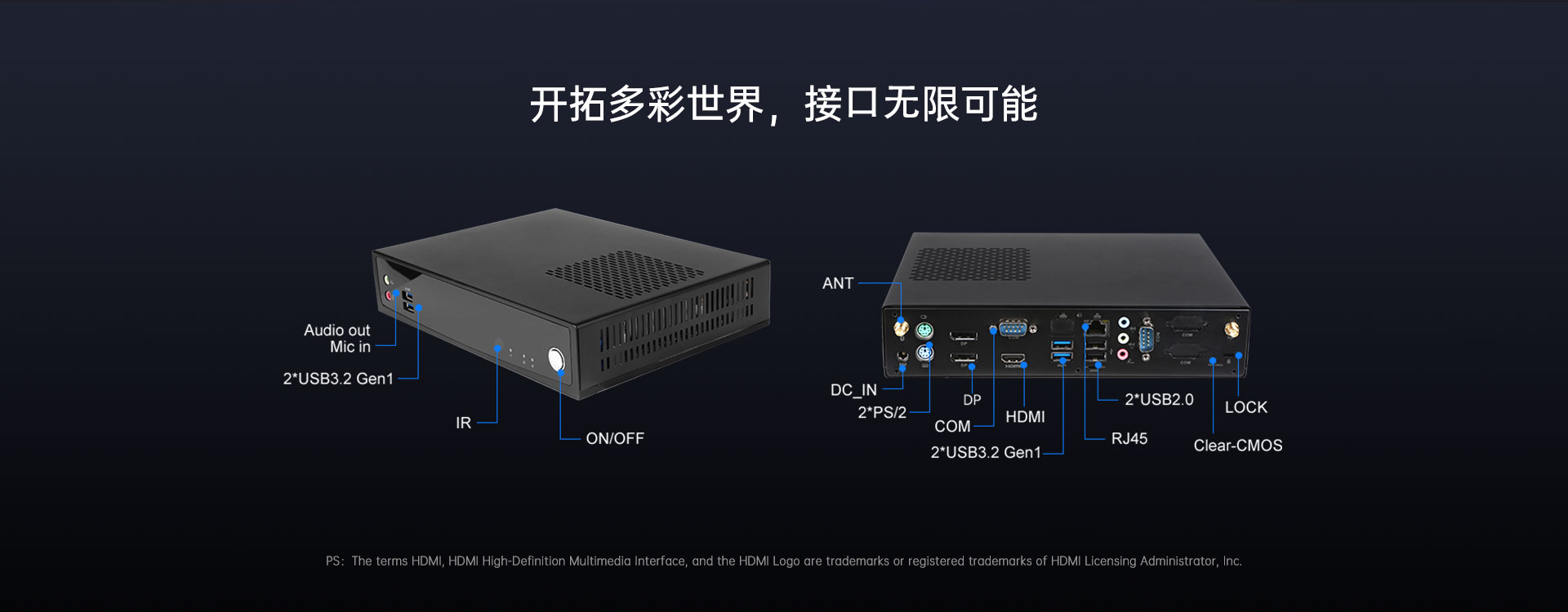 支持1x RJ45,1x Mini-PCIe扩展WiFi/BT